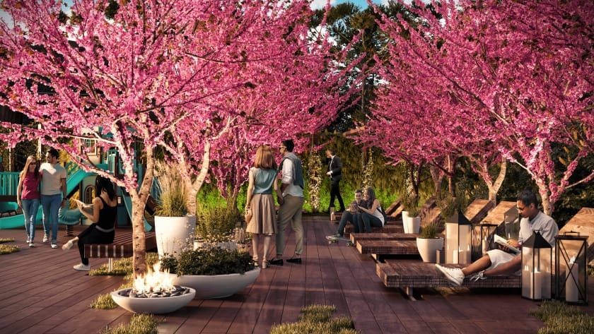 O empreendimento contará com, quiosque, adega, louge externo, lojas comerciais térreas; estacionamento rotativo; academia; salão de festas; adega; playground kids; ampla área de jardinagem e árvores preservadas.