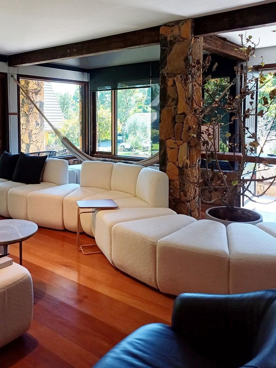 Encante-se com esta linda casa, onde o charme do piso de madeira original se mistura com a elegância das paredes de pedra e o piso em tacos de madeira natural, que mais parece um mosaico. Para momentos de descanso, desfrute da rede de palha de buriti trançada à mão, enquanto observa um pôr do sol sereno na varanda da suíte.