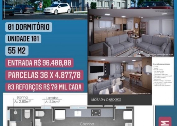SOLUCIONE IMÓVEIS VENDE: Apartamento com 2 dormitórios sendo 1 suíte, espera de calefação, Split, 1 vaga de garagem. Agende a sua visita!