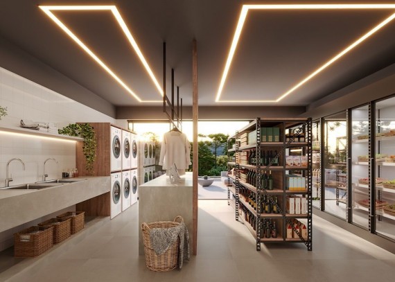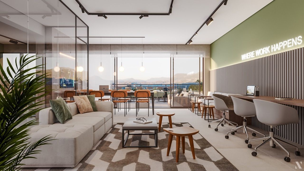 Infraestrutura que conta com: coworking, 2 salões