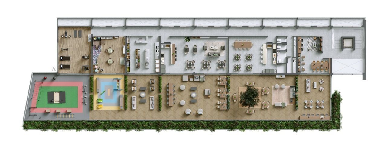 kids e academia, na área fechada. Ao ar livre haverá