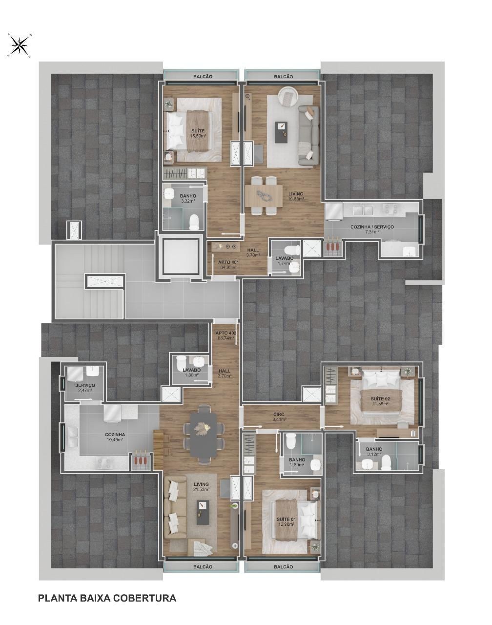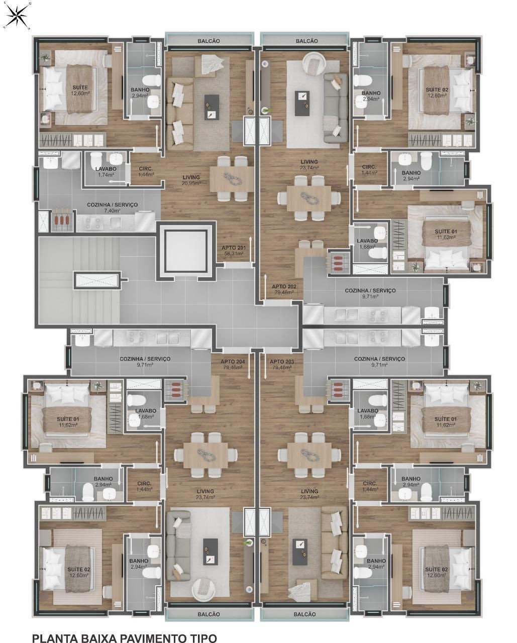 Acabamentos de alto padrão e plantas que buscam valorizar cada espaço.
