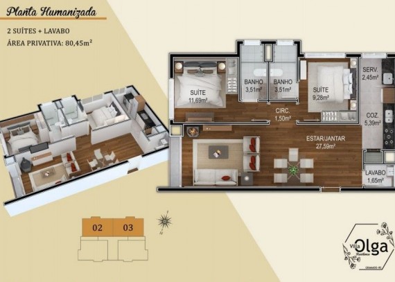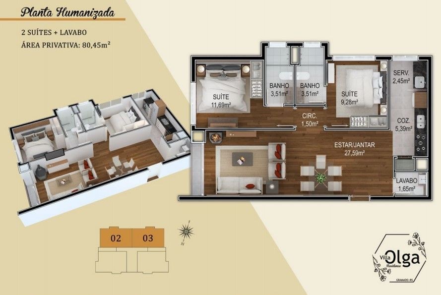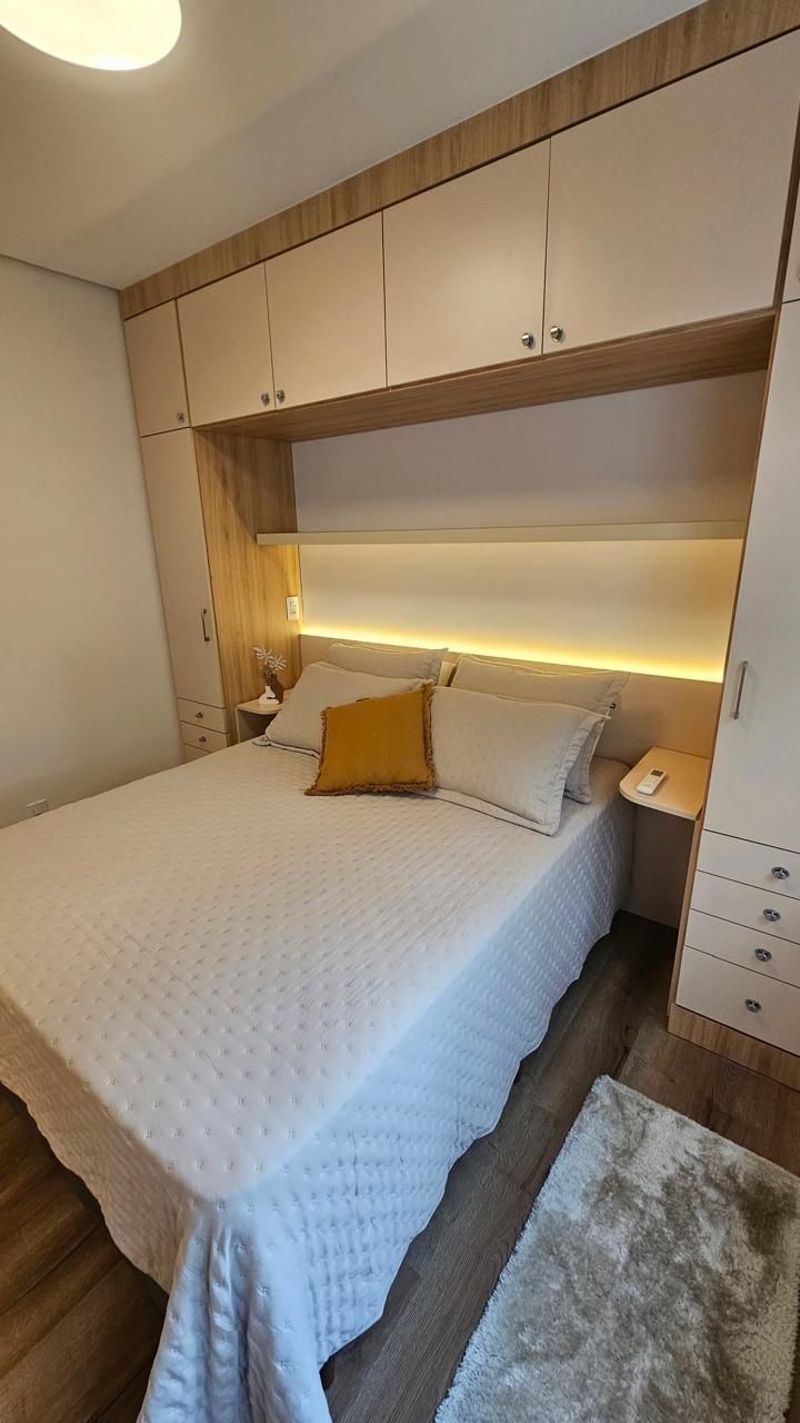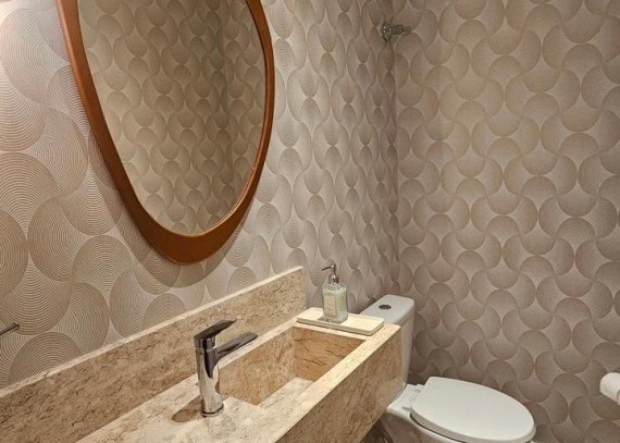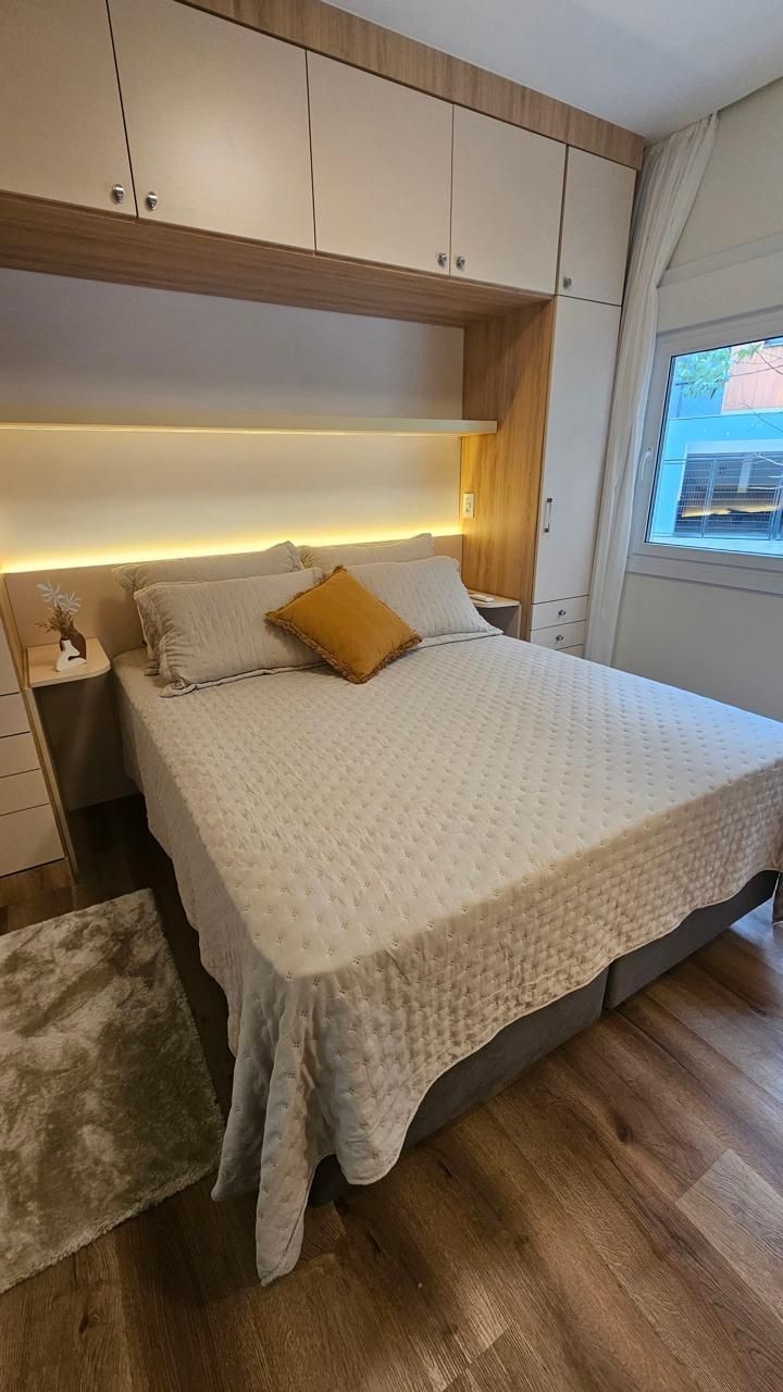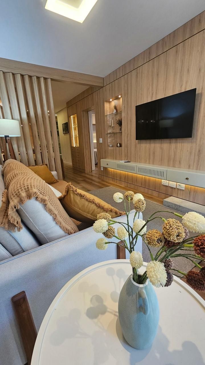 SOLUCIONE IMÓVEIS VENDE: Apartamento MOBILIADO em Bairro NOBRE com 2 suítes, lavabo, 1 vaga de garagem. Espera de lareira e Split, piso laminado e porcelanato, esquadrias em PVC com vidros duplos.