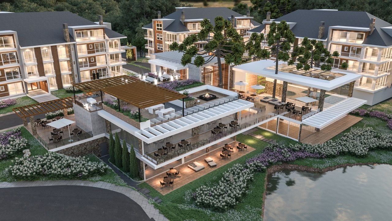 Localização rodeada de muita natureza, com excelente mobilidade para o centro de Gramado e também para a cidade de Canela. Apartamento com 1 suíte e lavabo. Apartamento possuem sacada com parapeito em vidro, esquadrias termo acústica em PVC com vidro duplo, rebaixamento em gesso, acesso aos apartamentos com senha, espera para Split, espera para lareira, espera para calefação, espera para água quente. O EMPREENDIMENTO terá portaria 24 horas, lago, pista de caminhada, 50% da área preservada, decks para contemplação, restaurante de uso exclusivo para moradores e seus convidados, mercearia para uso exclusivo dos moradores, 02 salões de festas, estações para carregamento de carros elétricos, bicicletário, espaço kids, espaço games, sala de jogos, academia, cinema, lareira externa, terraços e pergolados para convivência, piscina adulta, piscina infantil, sauna seca, hidromassagem, lavanderia industrial, energia fotovoltaica, aproveitamento da água da chuva, circulação com asfalto permeável, cabeamentos elétricos subterrâneos, tratamento de esgoto do empreendimento, piso porcelanato de alto tráfego nas garagens.