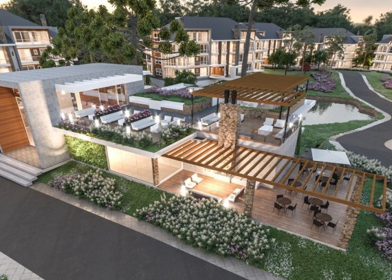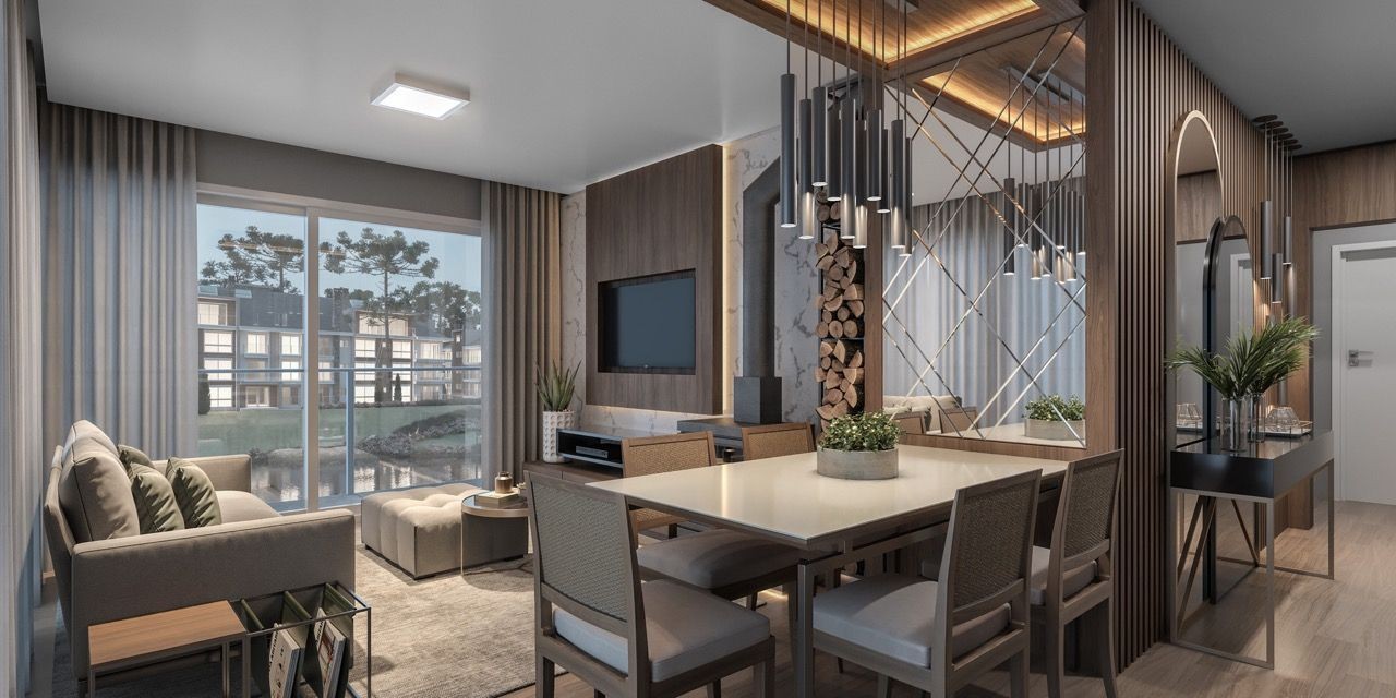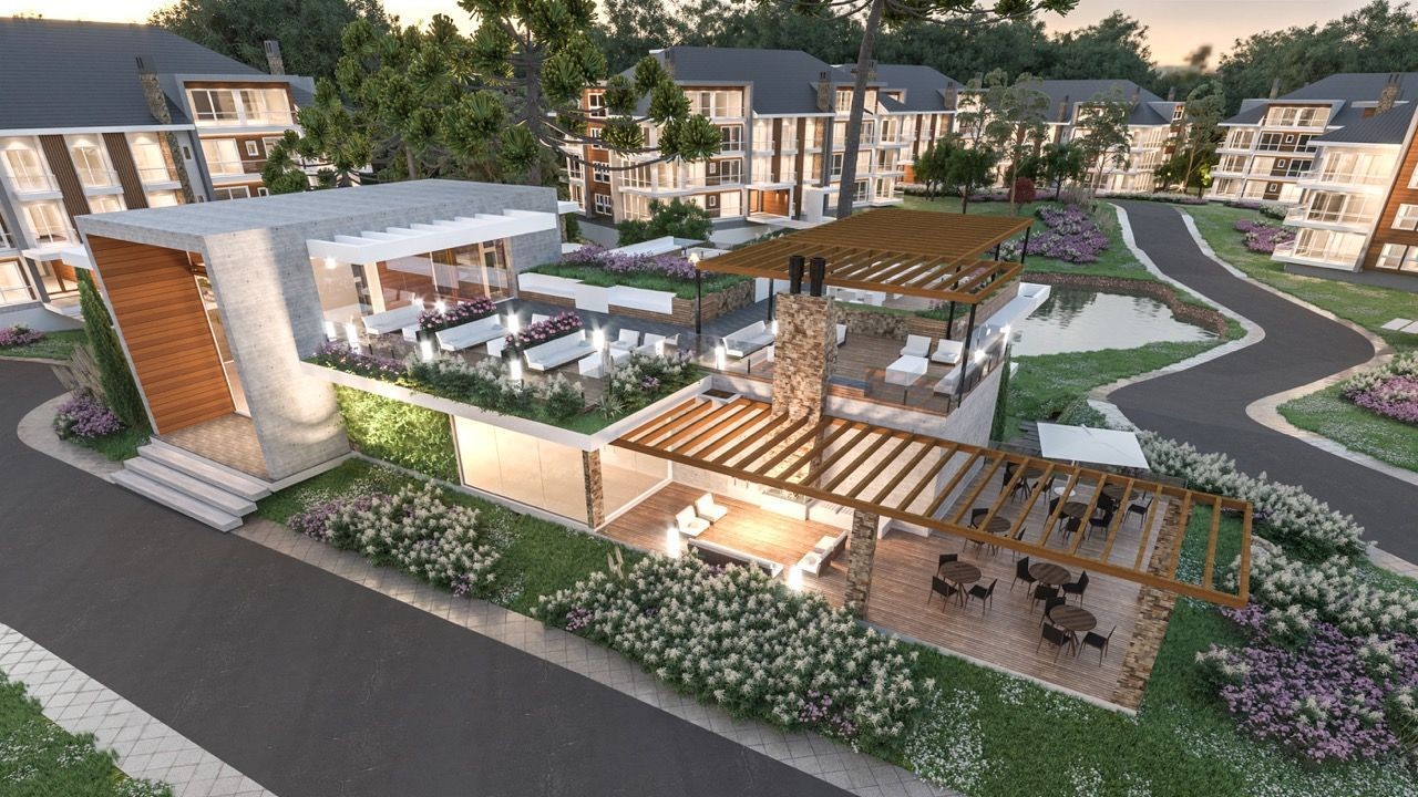 Localização rodeada de muita natureza, com excelente mobilidade para o centro de Gramado e também para a cidade de Canela. Apartamento com 1 suíte e lavabo. Apartamento possuem sacada com parapeito em vidro, esquadrias termo acústica em PVC com vidro duplo, rebaixamento em gesso, acesso aos apartamentos com senha, espera para Split, espera para lareira, espera para calefação, espera para água quente. O EMPREENDIMENTO terá portaria 24 horas, lago, pista de caminhada, 50% da área preservada, decks para contemplação, restaurante de uso exclusivo para moradores e seus convidados, mercearia para uso exclusivo dos moradores, 02 salões de festas, estações para carregamento de carros elétricos, bicicletário, espaço kids, espaço games, sala de jogos, academia, cinema, lareira externa, terraços e pergolados para convivência, piscina adulta, piscina infantil, sauna seca, hidromassagem, lavanderia industrial, energia fotovoltaica, aproveitamento da água da chuva, circulação com asfalto permeável, cabeamentos elétricos subterrâneos, tratamento de esgoto do empreendimento, piso porcelanato de alto tráfego nas garagens.