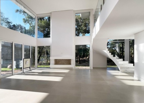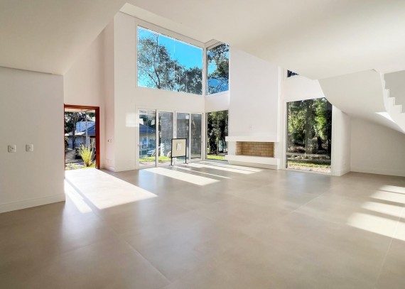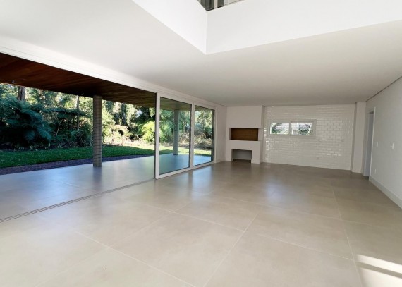 LInda casa conta com amplo living, proporcionando integração entre todos os ambientes sociais da casa, cozinha com ilha e churrasqueira, área de serviço, despensa, depósito, duas lareiras e lavabo. Aberturas amplas e em grande quantidade garantem uma ótima incidência solar, integrando a residência com a natureza. Com 3 suítes, todas com sacada, sendo uma suíte máster