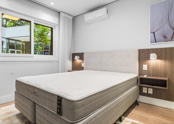 • Vista para a cidade e bosque • Infraestrutura para lareira à lenha • Aberturas em PVC com vidro duplo. • Esperas para calefação e ar-condicionado. • Churrasqueira com espera para bifeteira. • Infraestrutura para instalação de sistema de aspiração central. • Arquitetura contemporânea em harmonia com materiais característicos da região. • Projeto valoriza o contato dos apartamentos com a natureza e o verde. • Projeto paisagístico com espelhos d’água. • Sistema de reaproveitamento de águas pluviais para a área condominial. • Dois elevadores por torre, com sistema de biometria e senha. • Salão de festas com espaço gourmet • Espaço de spa com piscina térmica, ambiente desumidificado e hidromassagem.