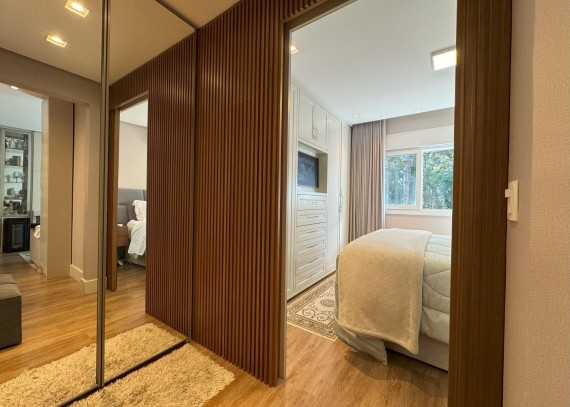 Empreendimento contém piso vinilico colado na sala, circulação e dormitórios, porcelanato nas áreas úmidas e sacadas. Esquadrias em PVC, vidros duplos, living cm espera para lareira, cozinha com churrasqueira, Laje com tratamento para atenuação de ruídos de impacto, infraestrutura para ar condicionado no living e dormitórios, teto com rebaixo de gesso. Uma maravilhosa área comum cerca de 4.000m² de jardim contando com uma diferenciada infraestrutura de lazer, horta comunitária, Pomar com arvores frutíferas, área para piquenique, pergolados de contemplação, espelhos d'agua, salão de festas com espaço gourmet ( entregue mobiliado) espaço Parilha ao ar livre, Fire pit, Playground, academia pet, academia ao ar livre.