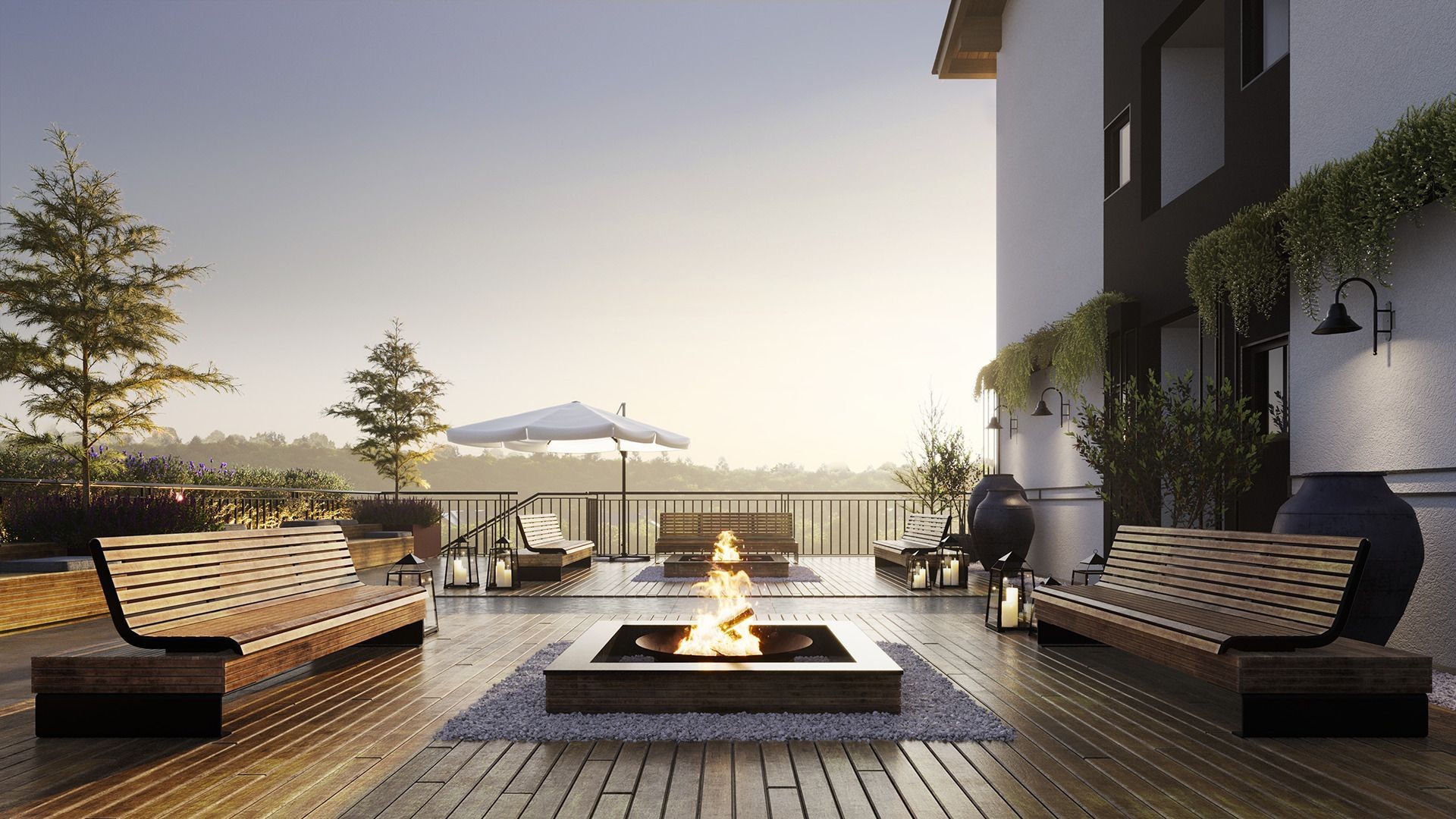 Apartamentos com Piso porcelanato nas áreas frias e vinílico nos dormitórios e salas de jantar e estar.Espera para lareira, split e coifa.Água quente em todos os pontos.Esquadrias em PVC e vidros duplos com isolamento termoacústico