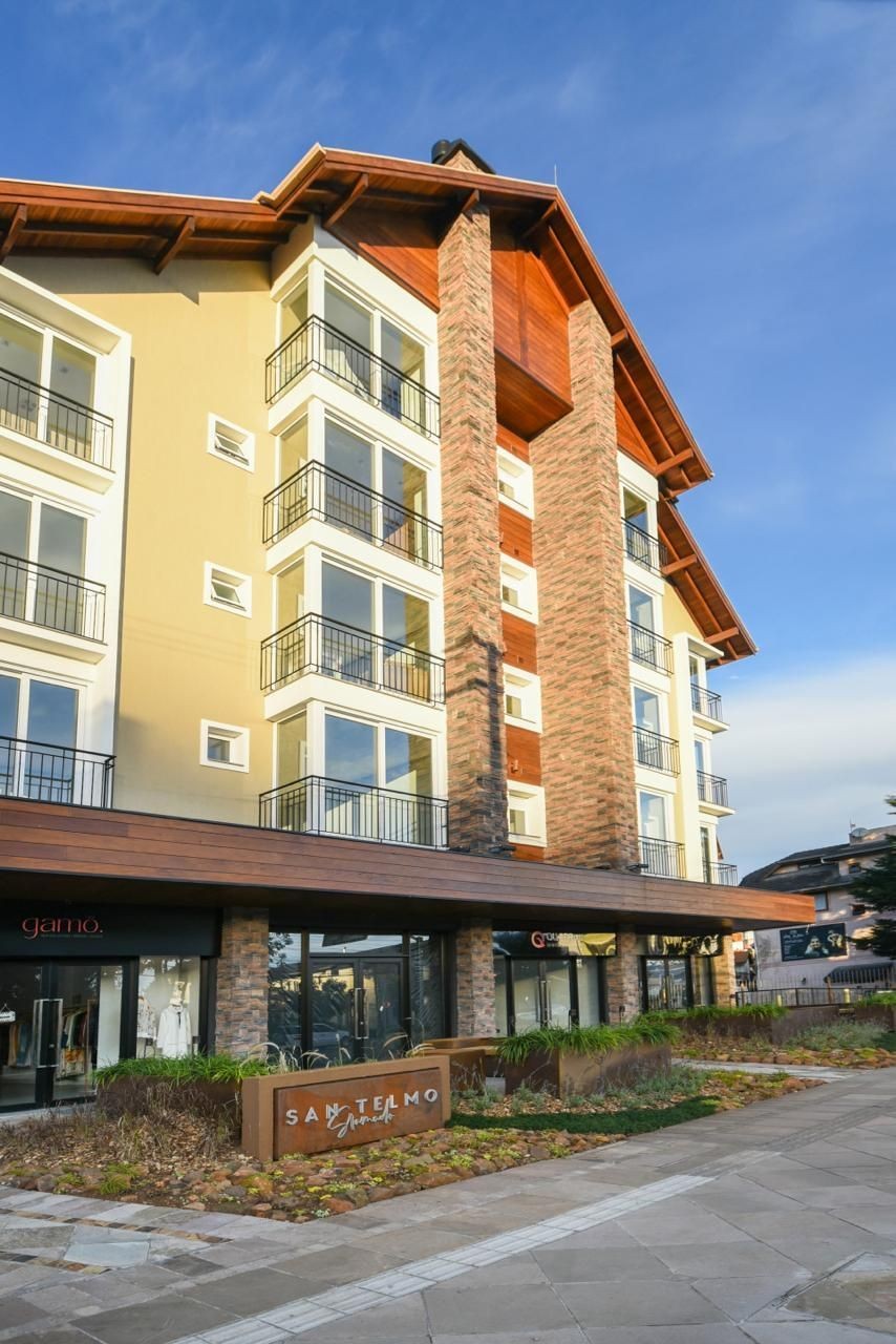 SOLUCIONE IMÓVEIS VENDE: Excelente Apartamento em Gramado no Residencial San Telmo, tem uma localização privilegiada, no Centro de Gramado. Apartamento com 2 dormitórios sendo 1 suíte e 1 banho social, área de serviço, estar, jantar e cozinha integrada e um terraço privativo ,churrasqueira, espera de Split, calefação, água quente, banheiros com espera para piso aquecido, vidros duplos. Agende a sua visita na nossa imobiliária para maiores informações.