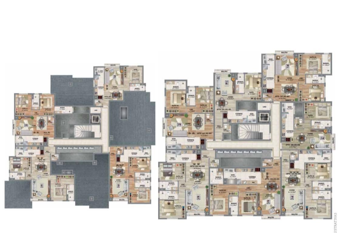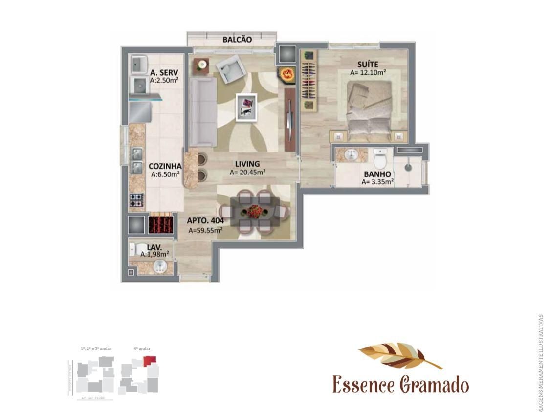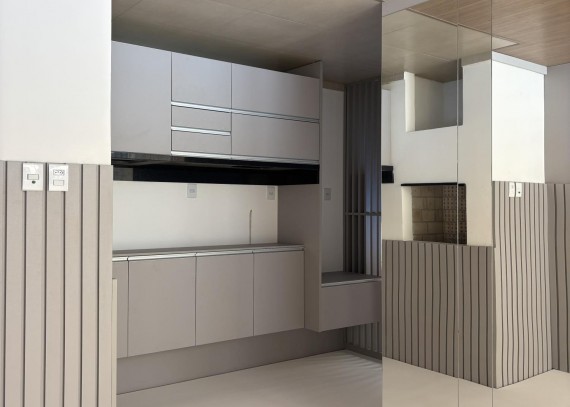 Empreendimento conta com espera de Split, Calefação, lareira, cozinha com churrasqueira e área de serviço, piso porcelanato e laminado, esquadrias em PVC, 1 vaga de Garagem.