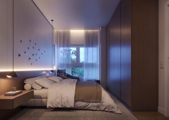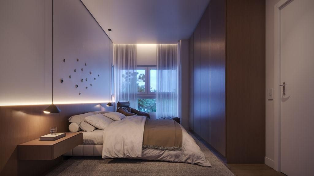 As esquadrias terão vidros duplos termo acústicos e fechaduras eletrônicas biométricas.