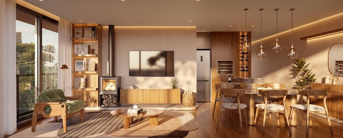 Com arquitetura contemporânea, o empreendimento combina linhas modernas com acabamentos que remetem à natureza local, como detalhes em madeira nobre e pedra, criando um visual elegante e atemporal, perfeitamente integrado ao charme da cidade.