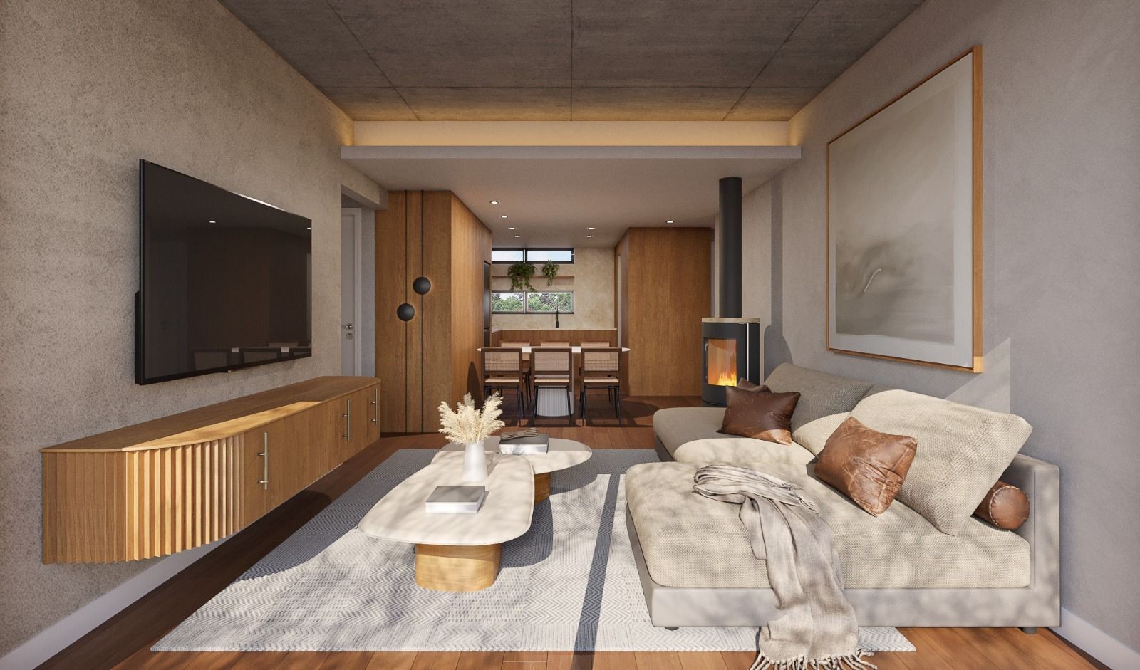 Ambientes amplos, onde a luz atravessa o dia, enquadra a paisagem e valoriza cada detalhe do design minimalista. Um projeto que une materiais atemporais à delicada integração com o bosque nativo, criando um refúgio urbano em plena harmonia com a natureza.