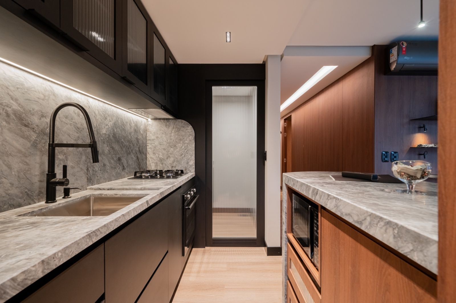 _ Esquadrias externas em PVC preto com vidro duplo