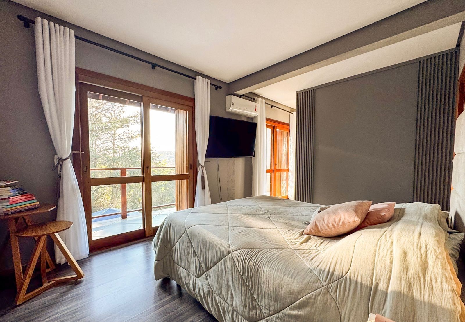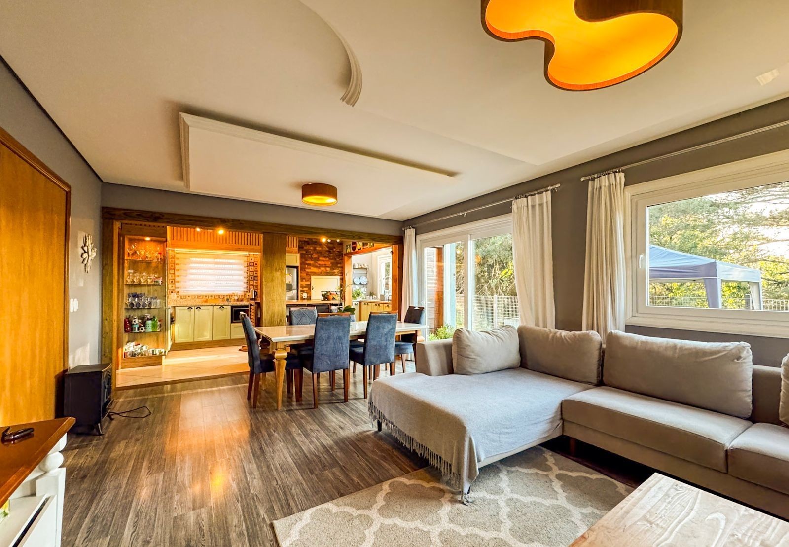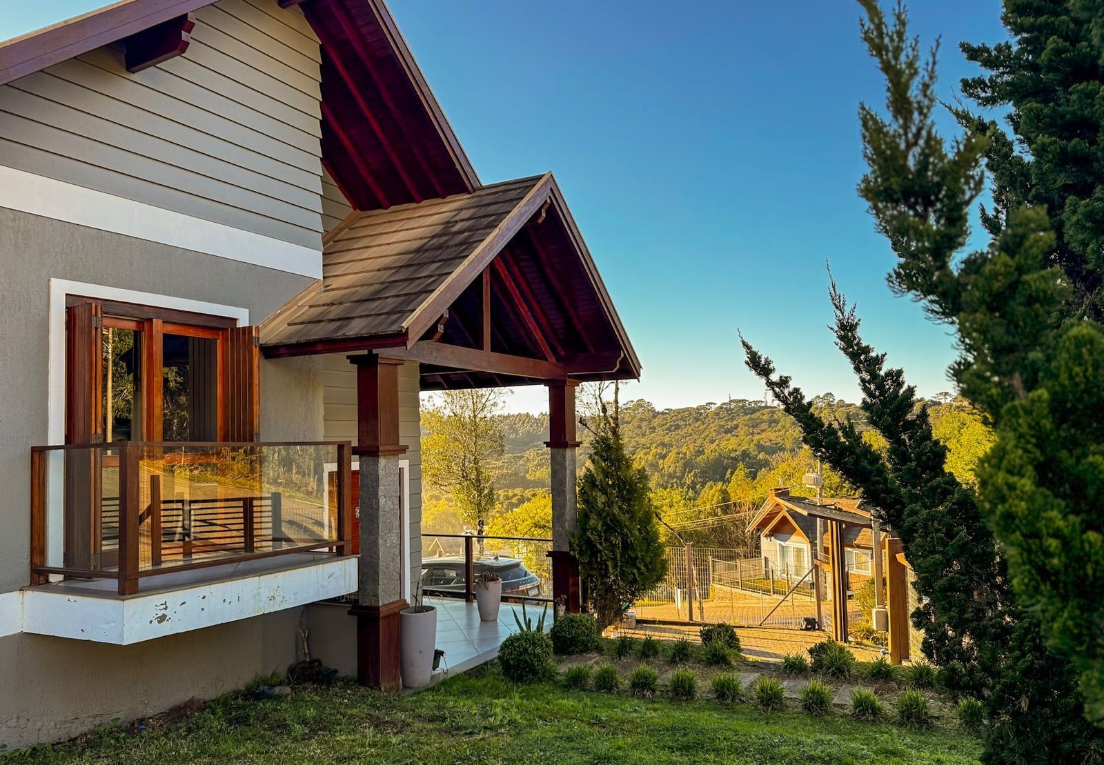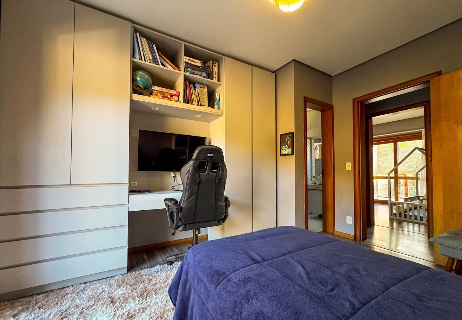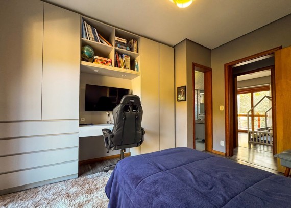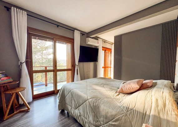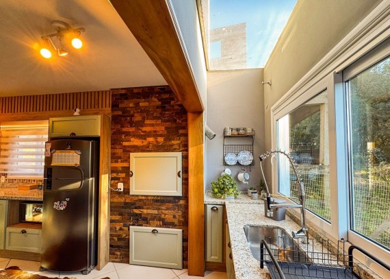 Totalmente mobiliada e decorada, apresenta acabamentos em gesso, lareira, churrasqueira, água quente, ar-condicionado e portão eletrônico, garantindo praticidade, conforto e sofisticação em todos os ambientes.
