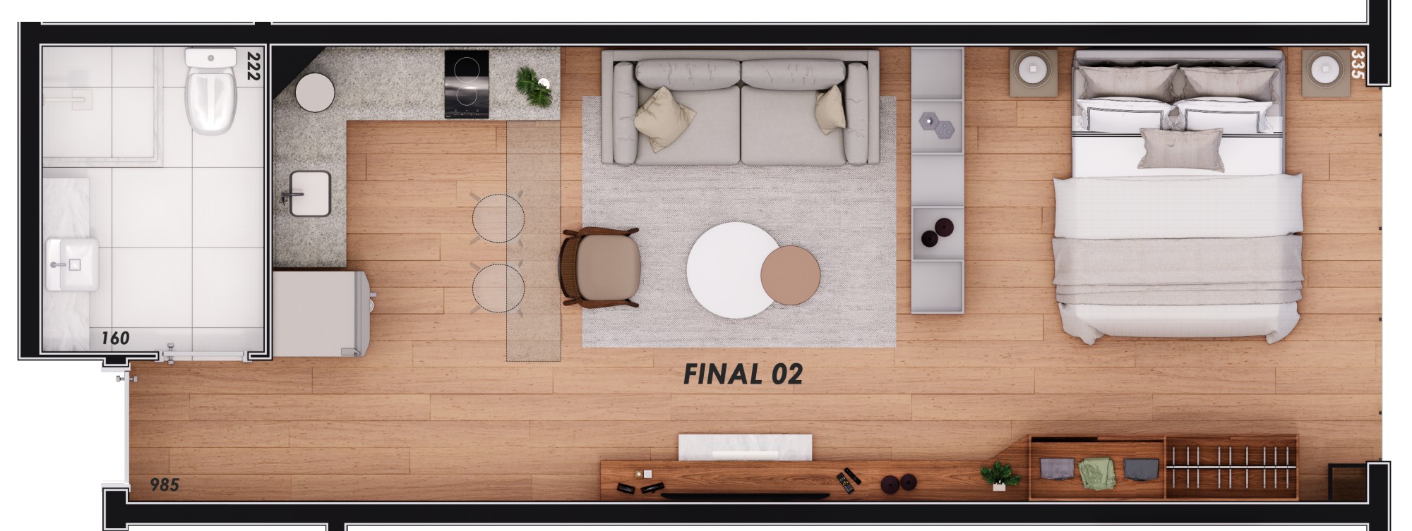 Com opções de 01 suíte, 02 suítes ou studio, cozinha americana com churrasqueira, área de serviço, sala de estar e jantar, espera para lareira e 01 vaga de garagem.