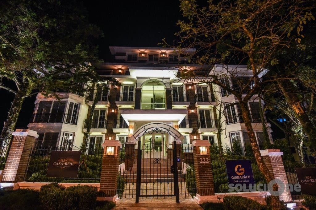 SOLUCIONE IMÓVEIS VENDE: Mansões suspensas com arquitetura em estilo inglês, um empreendimento Triple A sem precedentes em Gramado. O Casa Real conta com 09 exclusivas residências, todas com 04 suítes, 04 vagas de garagem e depósito, são 02 elevadores no empreendimento, Hall de entrada com pé direito duplo, Port cochère, gerador parcial de energia, automação total (som, luz, persianas e aquecimento), esquadrias com vidros duplos, sistema de aquecimento por piso radiante e ar condicionado tipo split ou K7 entregues instalados, além de ótima posição solar e vista eterna para o Vale do Quilombo. Converse com o arquiteto da incorporadora e personalize planta e