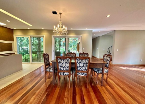A Casa é composta por 4 suítes mais dependência de empregada, 1 suíte máster com hidromassagem e closet, também compõe-se de living dois ambientes, um ampla sala de estar com lareira, cozinha separada com churrasqueira, lavabo e garagem com pergolado.