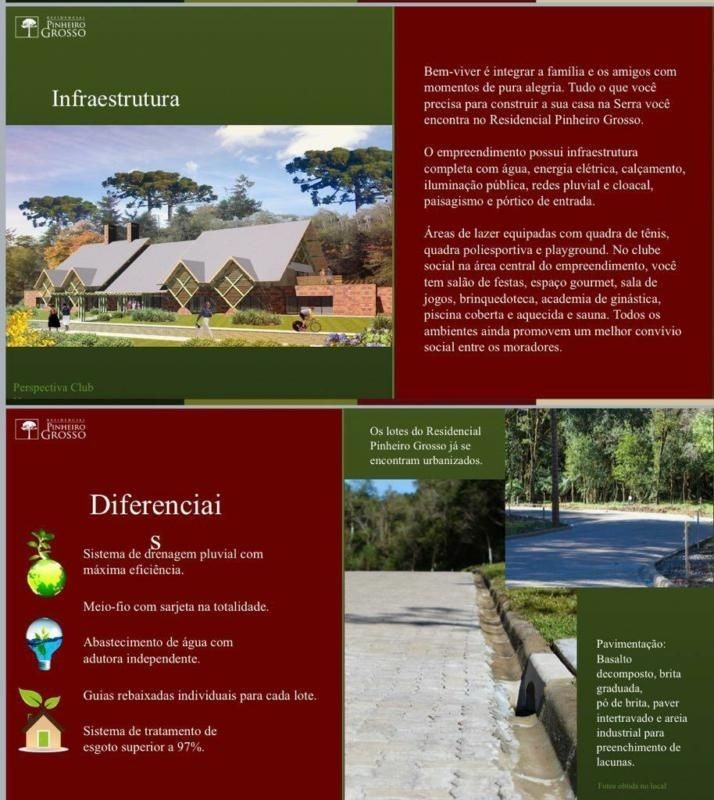 SOLUCIONE IMÓVEIS VENDE: No residencial Pinhiero Grosso respeito ao meio ambiente, refinamento técnico, perfeição no acabamento e baixo custo de manutenção são compromissos permanentes. Toda estrutura e tranquilidae para viver sua natureza. Lazer e Segurança completos. Clube Social equipado com: salão de festas, espaço gourmet, sala de jogos, brinquedoteca, academia de ginástica, piscina coberta e aquecida, sauna, quadra de tênis, quadra de futebol e playground.