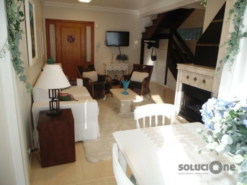SOLUCIONE IMÓVEIS VENDE: Ótimo Apartamento Duplex MOBILIADO 3 dormitórios sendo duas suítes no Centro de Gramado, cozinha, sala de estar e jantar, área de serviço, com churrasqueira e lareira e uma vaga de garagem.