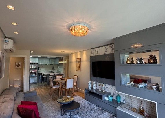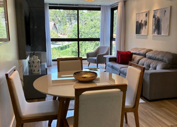 SOLUCIONE IMÓVEIS VENDE: Charmoso Apartamento MOBILIADO, localizado próximo ao Centro de Gramado. No Bairro Bavária, local encantador que você e sua família poderão desfrutar toda tranquilidade e bem-estar. Apartamento com amplo estar e jantar com sacadas integradas, 2 suítes, lavabo, lareira, calefação e Split. 2 Box.