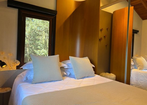 Encante-se com esta linda casa, onde o charme do piso de madeira original se mistura com a elegância das paredes de pedra e o piso em tacos de madeira natural, que mais parece um mosaico. Para momentos de descanso, desfrute da rede de palha de buriti trançada à mão, enquanto observa um pôr do sol sereno na varanda da suíte.