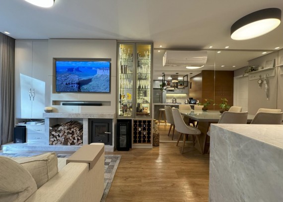 Empreendimento contém piso vinilico colado na sala, circulação e dormitórios, porcelanato nas áreas úmidas e sacadas. Esquadrias em PVC, vidros duplos, living cm espera para lareira, cozinha com churrasqueira, Laje com tratamento para atenuação de ruídos de impacto, infraestrutura para ar condicionado no living e dormitórios, teto com rebaixo de gesso.