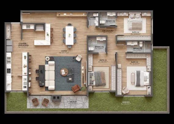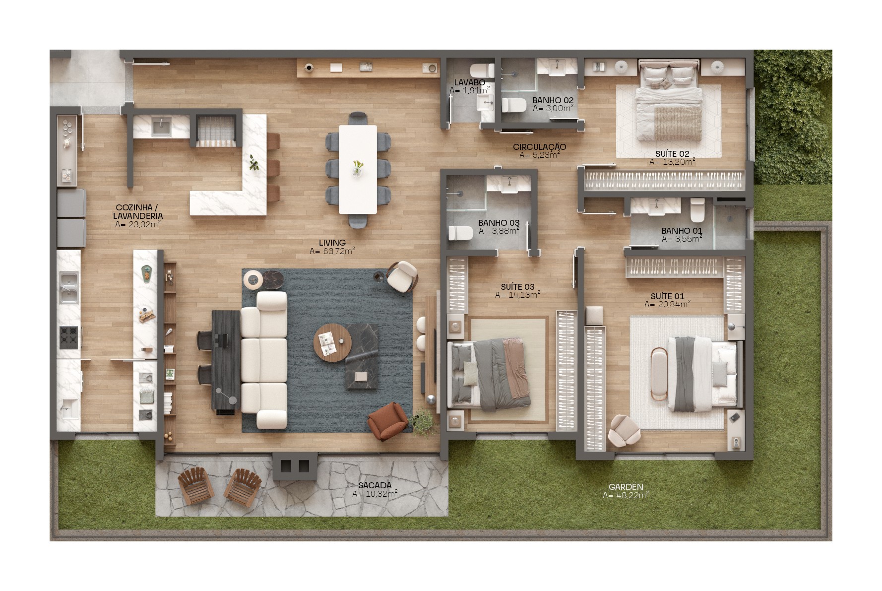 Garden com 48m² privativos.