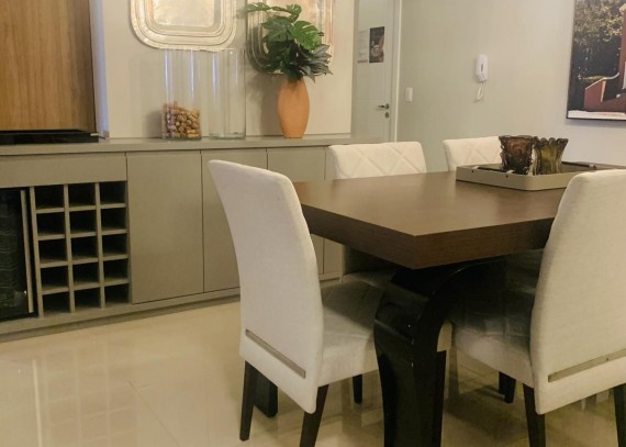 Com 2 suítes confortáveis e um lavabo, o apartamento oferece privacidade e praticidade. O living integrado com sacada é perfeito para momentos de descontração, enquanto a cozinha com churrasqueira proporciona um espaço ideal para refeições e encontros com amigos.