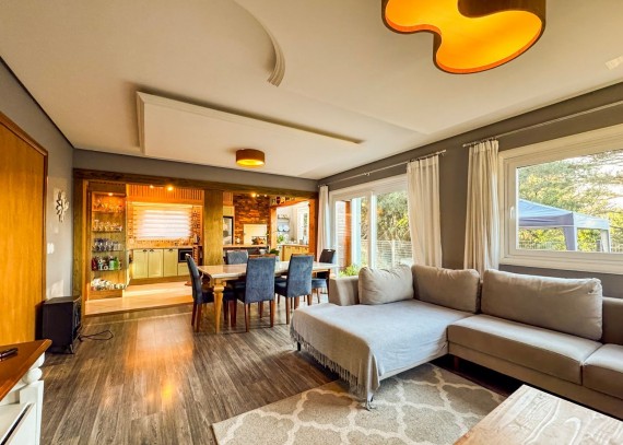 Totalmente mobiliada e decorada, apresenta acabamentos em gesso, lareira, churrasqueira, água quente, ar-condicionado e portão eletrônico, garantindo praticidade, conforto e sofisticação em todos os ambientes.
